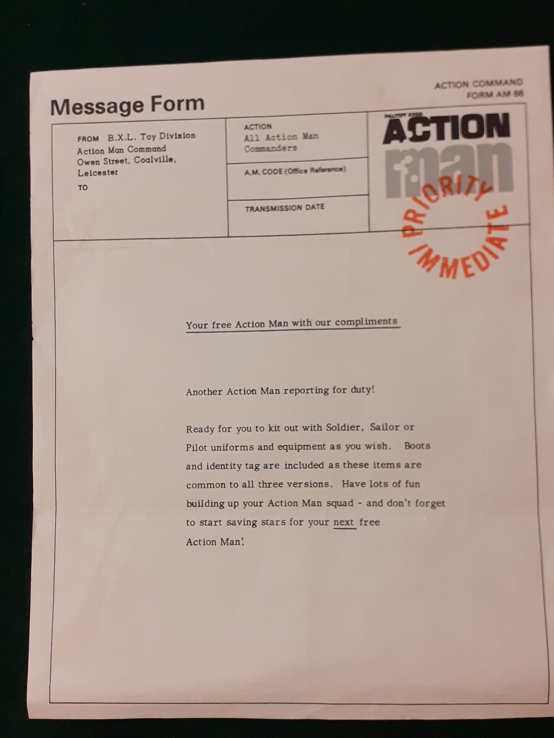An original 1960’s Message Form. The message form which came with your free action man after collecting 21 Stars. Good condition