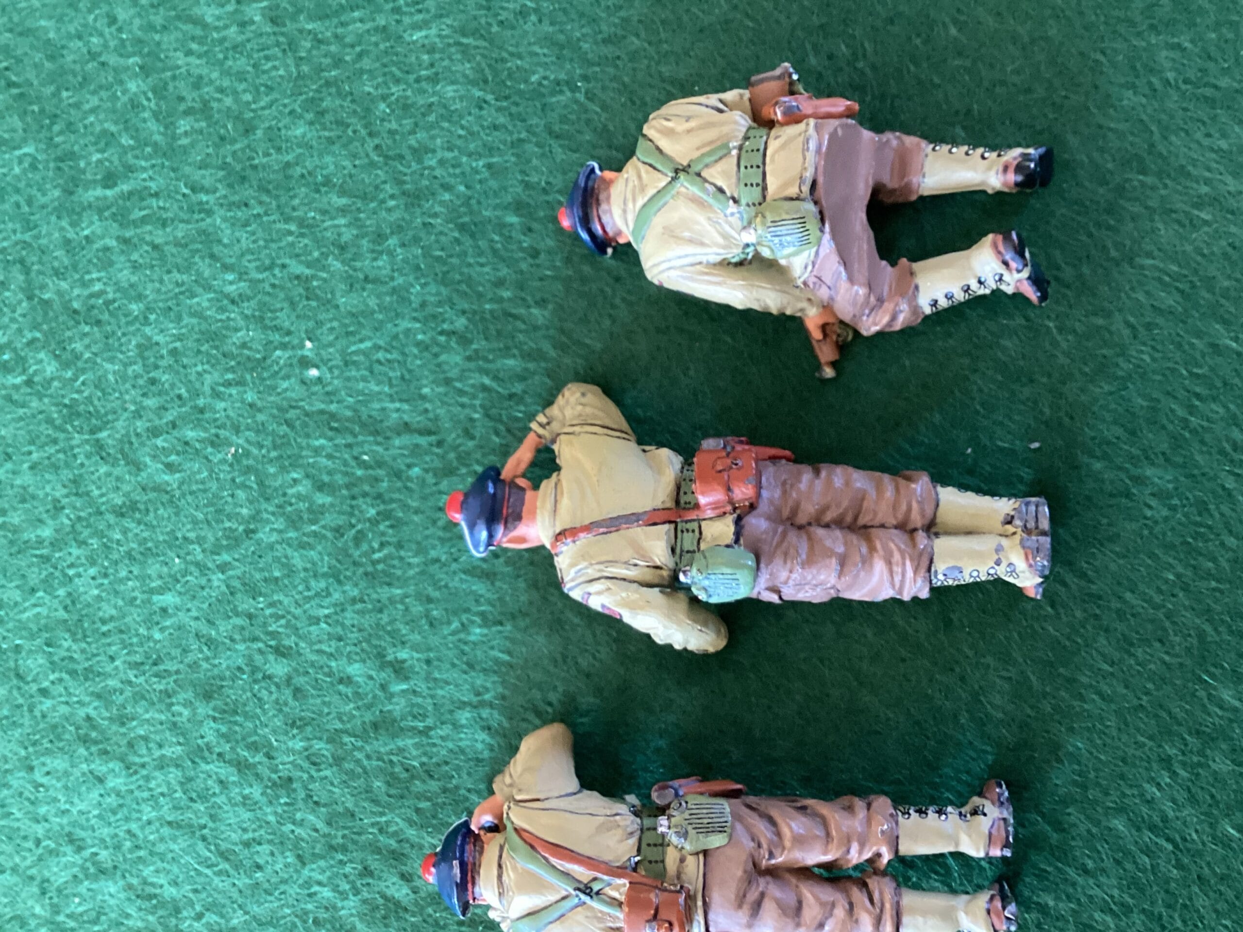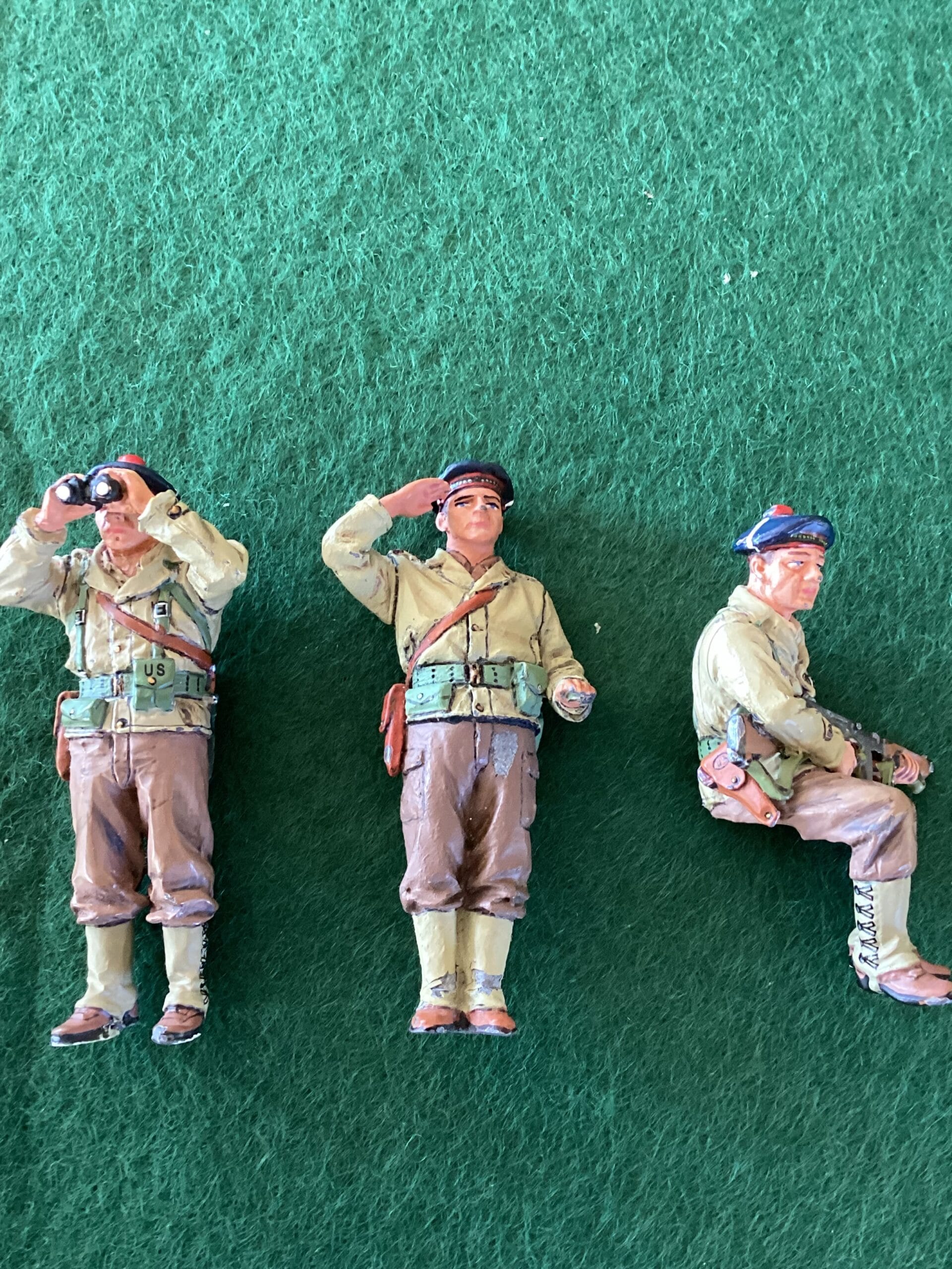 King & Country Free French Tank Crew – tank riders originally from Model DD 101 WW2 Free French Marine M10 Tank Destroyer. All figures are in good condition, one slightly play worn gaiters. generally GC. but no boxes. Postage in UK included in the price.