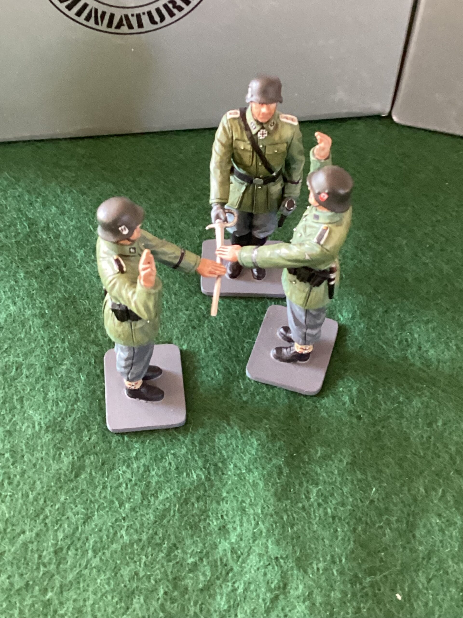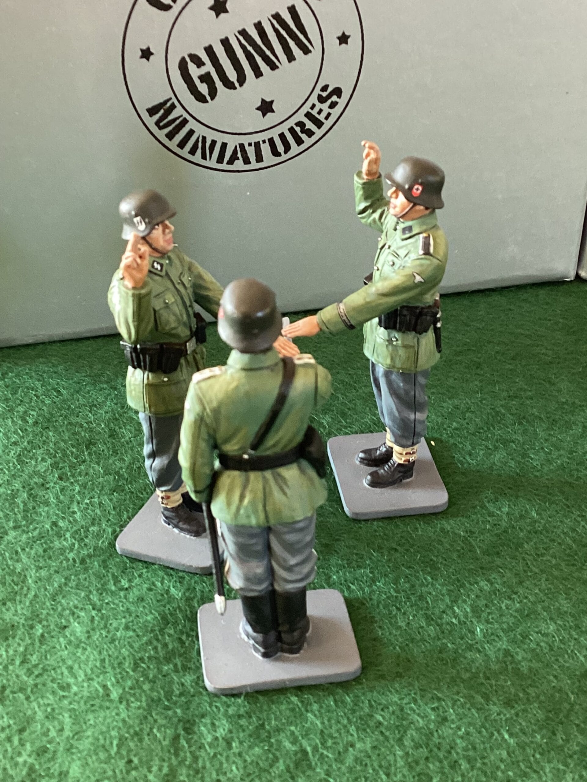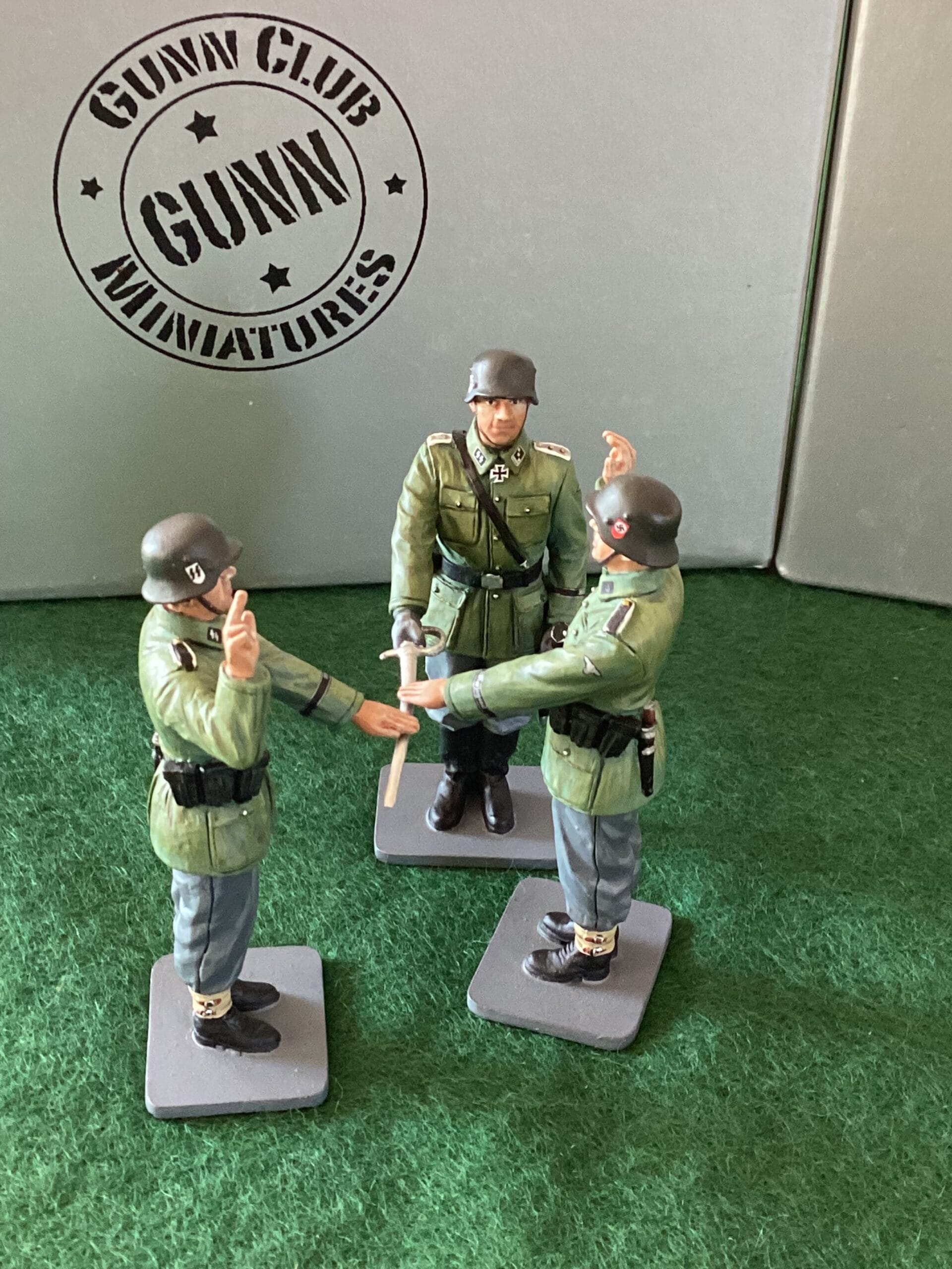 Thomas Gunn – “The Oath” – 3 x miniature soldier set. WW2 German Infantry recruits swear the oath to AH on an officers sword. All new, mint and boxed. UK Postage included in the price.